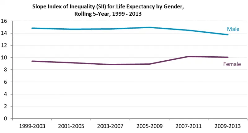 Figure 8: Slope Index of Inequality for Edinburgh male and female life expectancy, 1999-2013