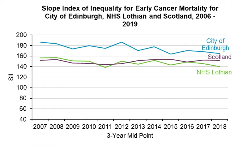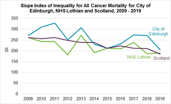 [3] The Slope Index of Inequality captures the difference in the average health status between a person in the highest socioeconomic group and a person in the lowest socioeconomic group.