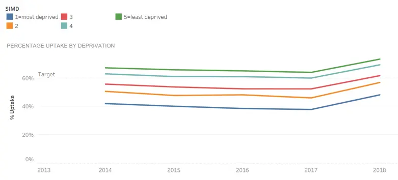 A similar pattern applies to uptake of vaccination for teenagers.