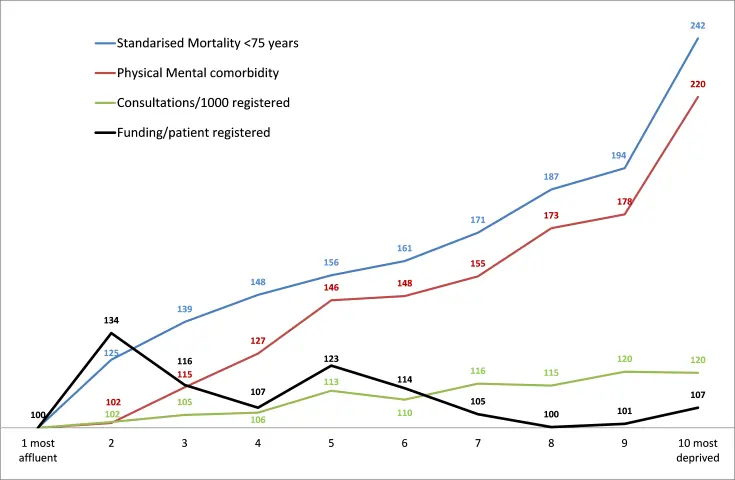 - Mercer, S.W. and G.C.M. Watt, The inverse care law: clinical primary care encounters in deprived and affluent areas of Scotland. Annals of Family Medicine, 2007. 5(6): p. 503-10.